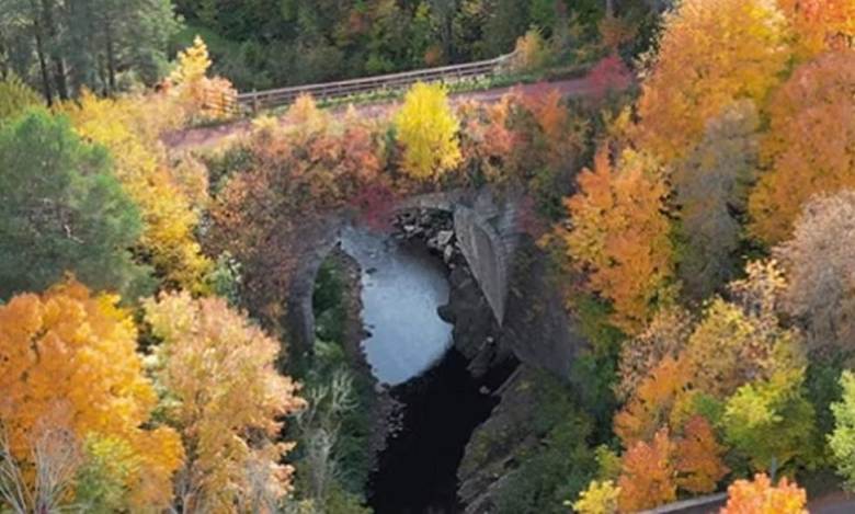 In Michigan’s rugged Upper Peninsula, the Ramsay Keystone Bridge, completed in 1891, stands as a monument to the mining boom that defined the region. Built by the Chicago & Northwestern Railroad, the bridge spans the Black River with a commanding stone arch designed to carry heavy ore trains. (99.1 WFMK)