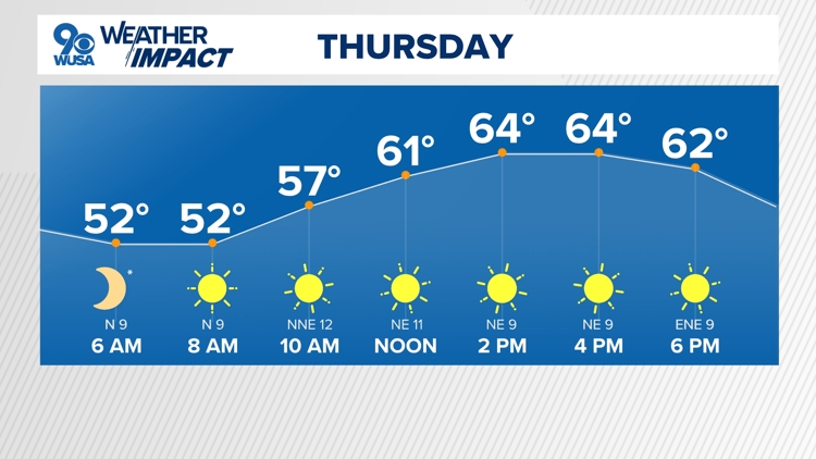 The chilly morning will tee us up for a cool and crisp Thursday forecast with high temperatures only reaching the mid 60s! At least it will be a pretty day with mostly sunny skies. Temps fall rapidly after sunset Thursday. Lows will be in the 30s in our northern and western suburbs.