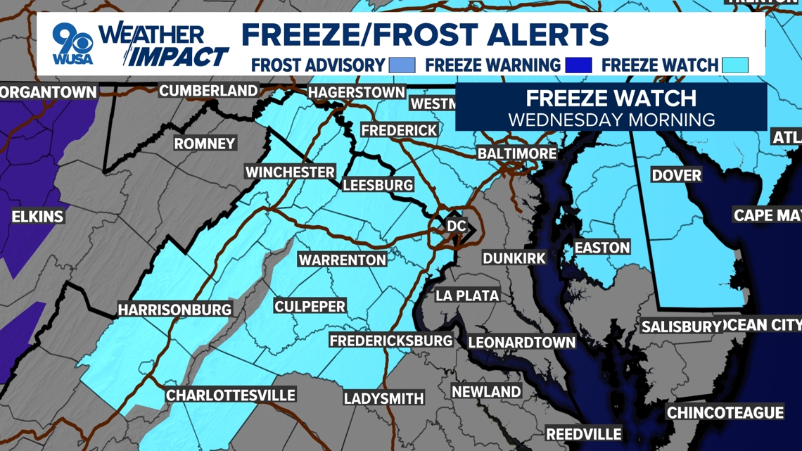 DC Forecast | Freeze Watch west Tuesday night
