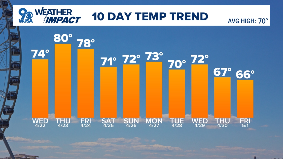 Thursday is the pick of the week with sunshine and high temperatures near 80.