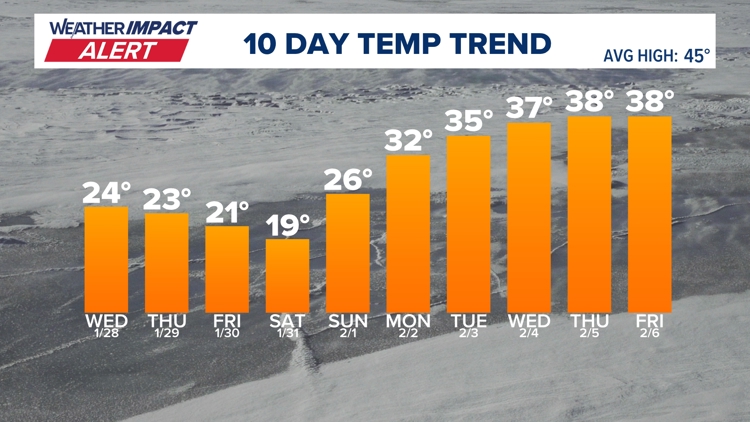 Arctic air stays locked in place for the rest of the week, and even into the weekend, with incredibly cold temperatures. We are on track for a 10 day stretch where the temperature never reaches freezing (32 degrees).
