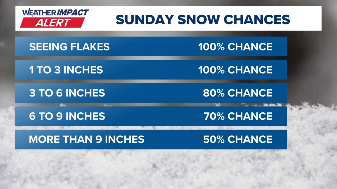 The European model still calls for highly impactful snow amounts. One notable change is that the storm is now trending a more northerly track which could introduce ice into the equation Sunday afternoon/evening. This switch to ice would be after significant snow accumulation. The silver lining about the ice trend, is that the temperature profile favors sleet over freezing rain. This would be good before sleet doesn’t pose the power outage threat that freezing rain does. Sleet would make the clean up much harder and weigh down the light, fluffy snow that falls first.